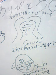 画像は寄せ書きサインにあった、さちんとMJの絵。ほほえましい。
