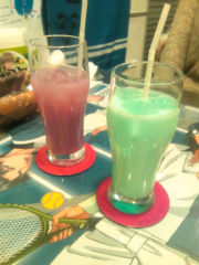 隣が屋台村だったのでまつげさんが青のエクレア略して青エクと私が乾汁を。