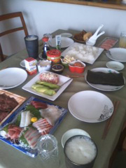 適当に食材(海鮮とほあぐらさんリクのローストビーフ)などを買い込み、まきまき…。