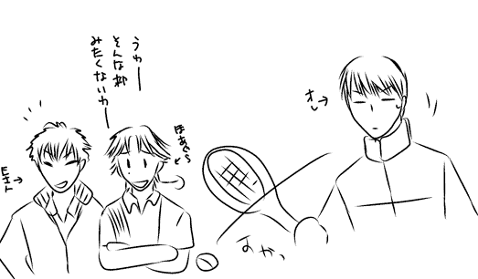 ほあぐらさん(跡部)、Eさん(謙也)、おいら(柳)です。(ラケットのモデルね)