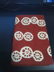 今日、エマさんが蓮根柄の手ぬぐいくれたよー!!!