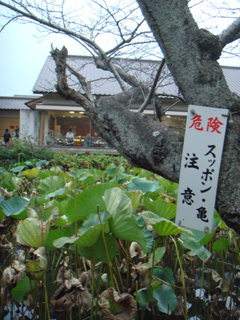 ちなみに夏には蓮でいっぱいになる池は、花が枯れて落ちてこんな有様。