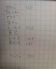 作業用PCの横にメモ帳をおいて、PCの裏技やら思いついたタイトルやら細かいことをメモってるんですけど、フェスのあとくらいに熱に浮かされたように立海メンバーの身長を調べたメモが出てきたのであまりにアホなのでのせとく。