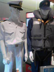 隊士の方(青いほう)は作業するときにつけるライフジャケットを着用してますが。(落ちても大丈夫なように)